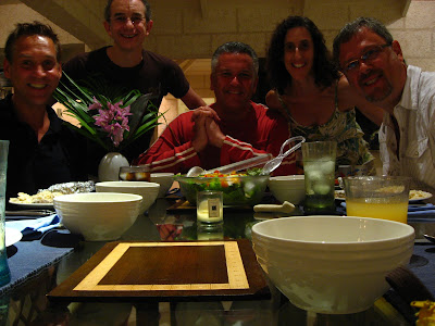 David and I arrived late afternoon. We headed to the beach right away to take a dip while the sun went down. That’s the birthday boy far right (Tim), and his friends Richard & Daryl (and me). This was the first of three spectacular sunsets.