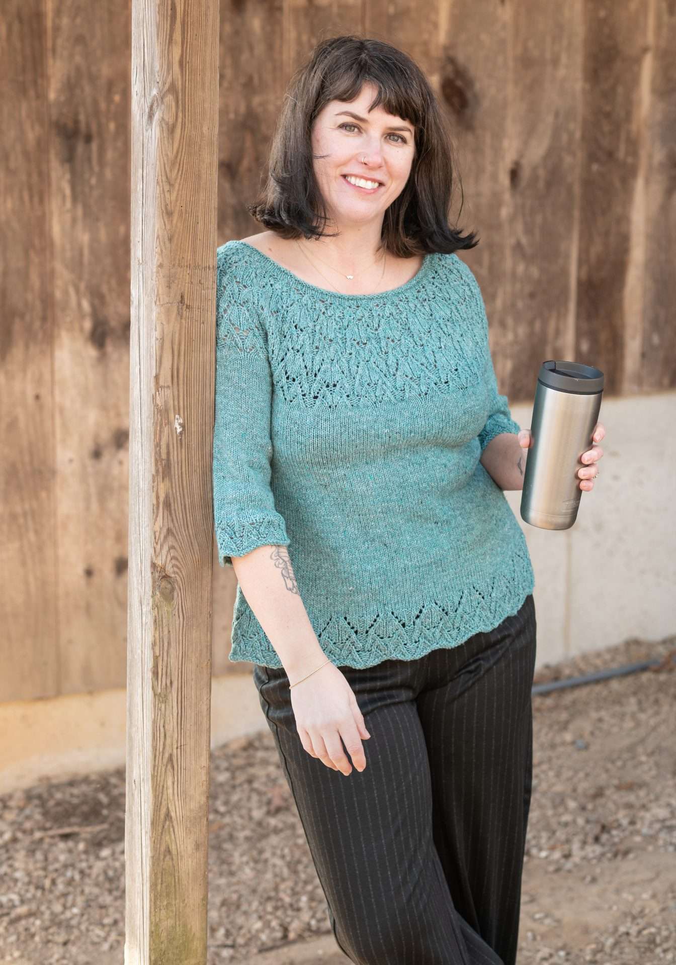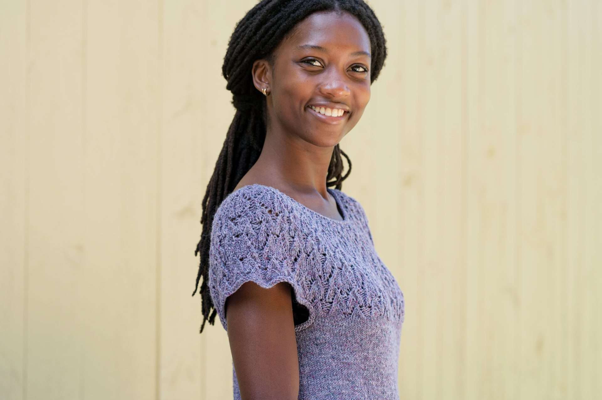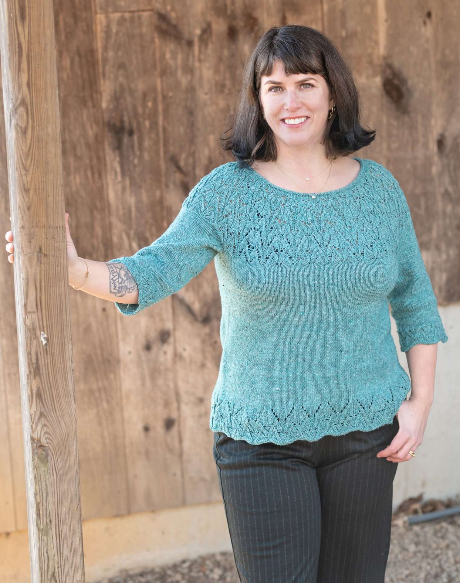 Top Shown: 36”/91.5 cm chest (with 3″ of negative of ease over full chest, 1” of ease over high chest).